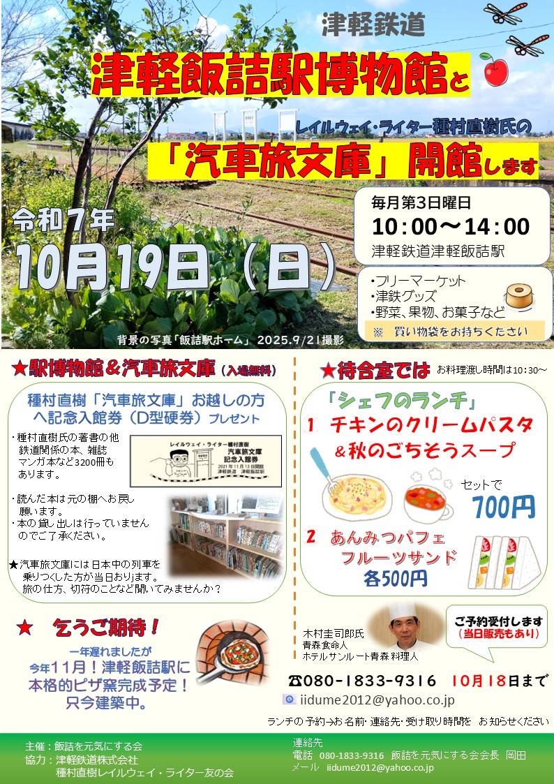 10時~14時、「津軽鉄道飯詰駅博物館」とともに無料でご見学いただけます。秋の津軽へ、どうぞお出かけください。